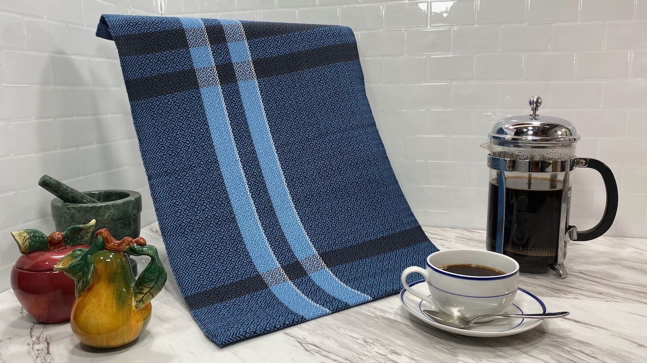 This kitchen towel features the weaving pattern called Wall of Troy. When I first saw this pattern I instantly thought of Helen of Troy from Greek mythology. The repeating square shapes of the design certainly look like something that would be found on ancient Greek pottery. Helen of Troy was known to be a weaver. This blog post “HELEN OF TROY: WORLD-RENOWNED WEAVER – AND, I HEAR, KINDA PRETTY!” about Helen of Troy and weaving in Ancient Greece is fascinating!